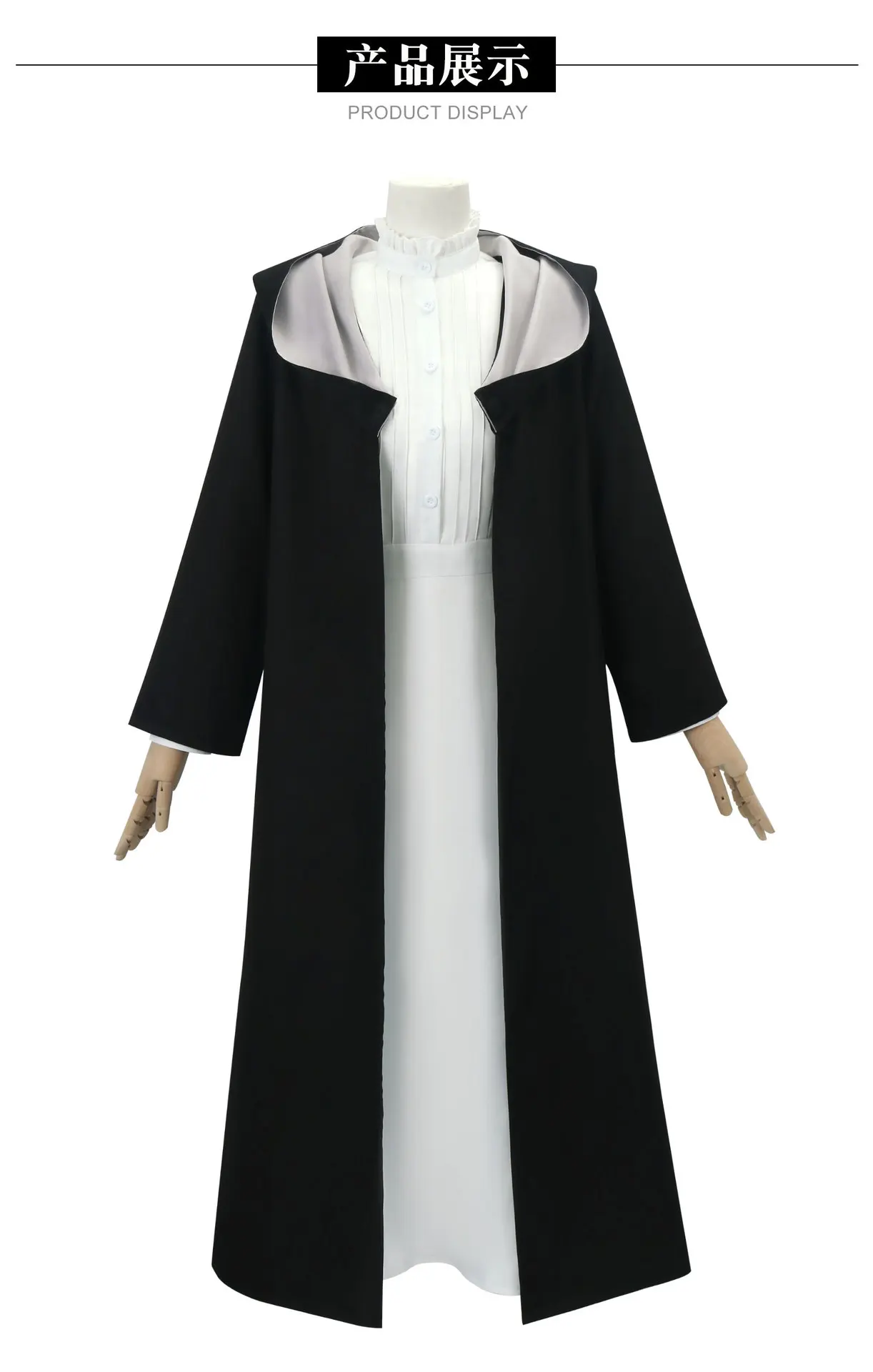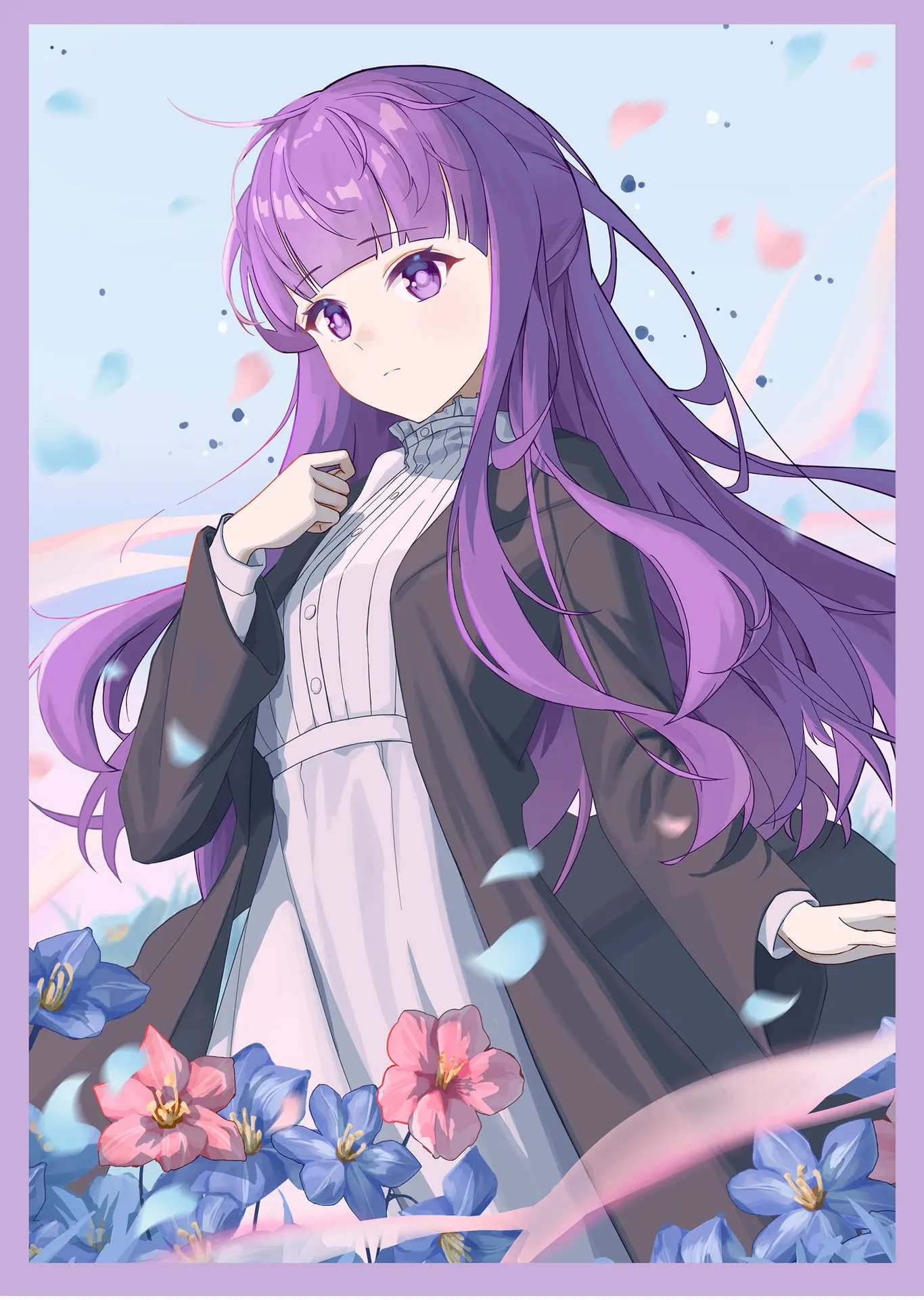 Anime Frieren: Beyond Journey’s End Fern Cosplay Costume White Long Dress and Black Robe Purple Wig Headwear Halloween Suit