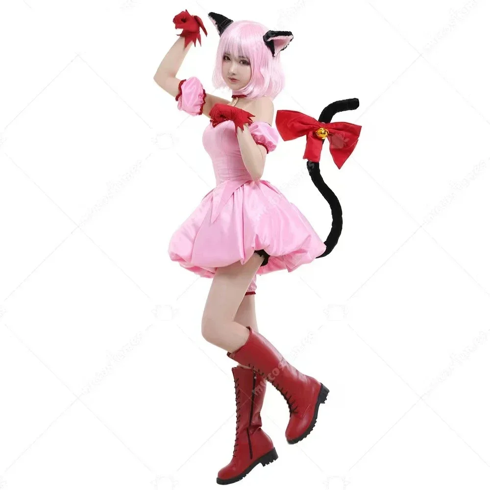 Anime Tokyo Mew Mew Ichigo Momomiya Mew Ichigo Transformed Short Pink Dress Cosplay Costume with Cat Ears and Tail