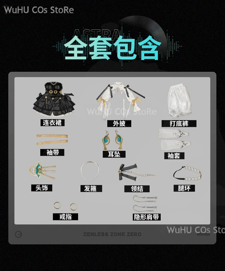 Astra Yao Cosplay Costume Game Zenless Zone Zero ZZZ Astra New Skin Chandelier Black Dress Suit Wig Women Halloween Rolpely Suit