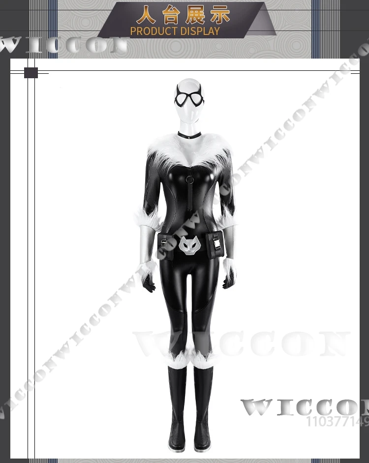Black Cat Felicia Hardy Game Skin Cosplay Costume Long Wig Sexy All Black Jumpsuit Shoes Women Girl Holloween Customized