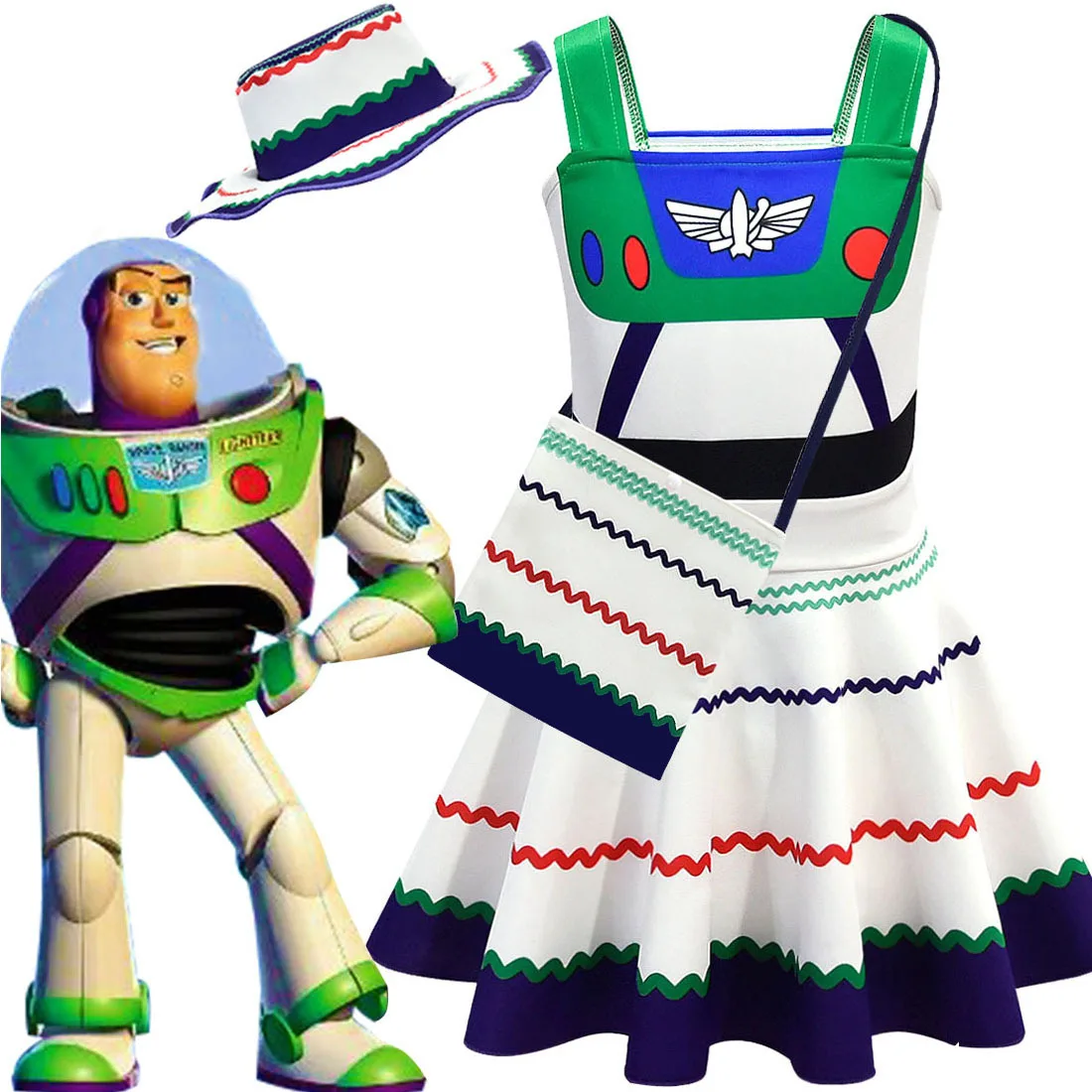 Buzz Lightyear Costume Girls Dress Cartoon Story Role Playing Dress up Party Clothing Long Pajama Dress Anime Frock Bo Peep Tutu