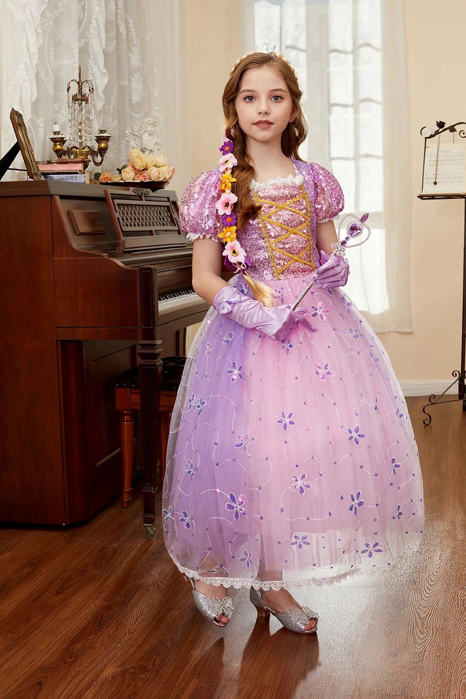 Children Princess Dress Up Girls Tangled Wedding Lace Clothes Kids Cinderella Elsa Rapunzel Party Christmas Cosplay Dresses