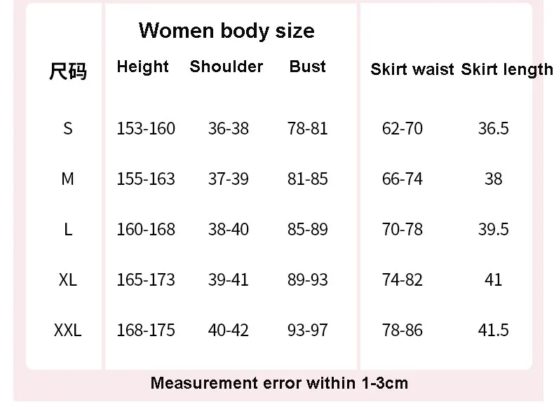 Size:please check our size chart clear before order. and please noted that the size chart may have 1-3cm error due to the measuring method, if you don’t know what size to choose, please contact us, we will recommend you a correct size.
