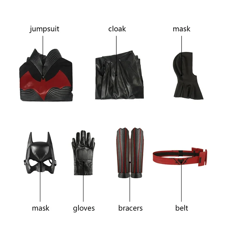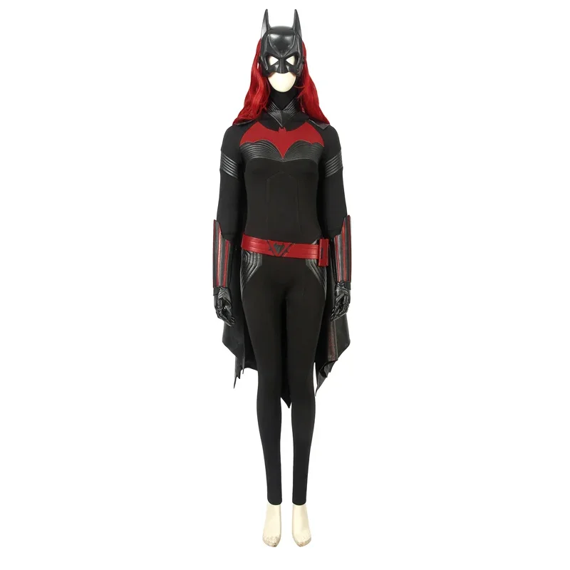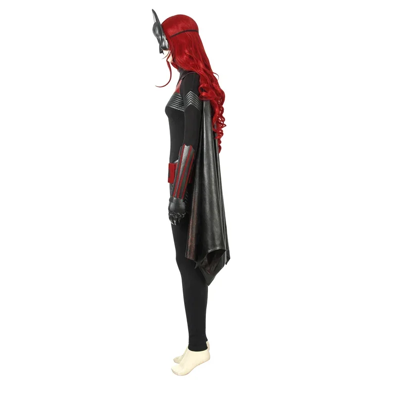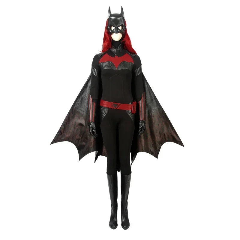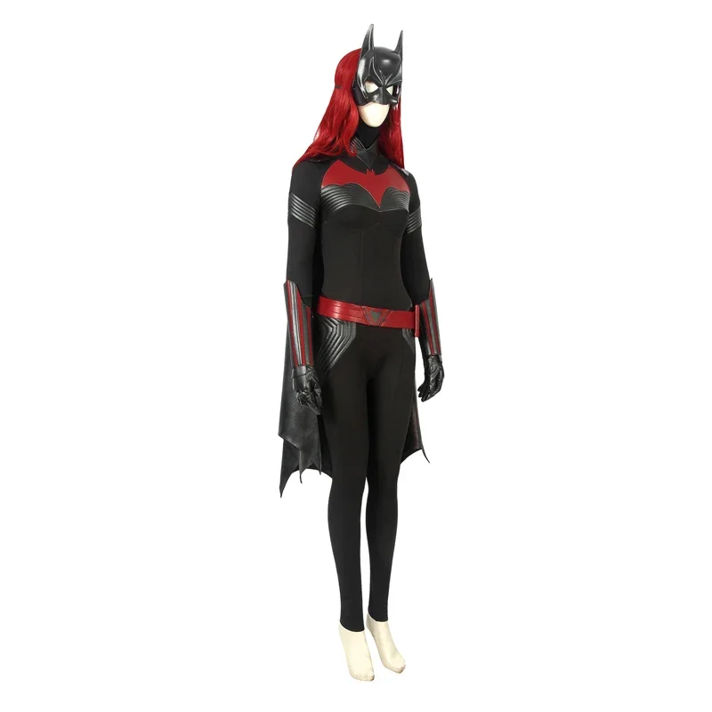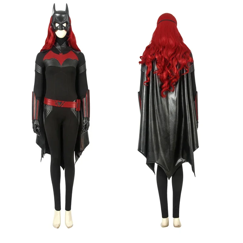 Female Batwoman Cosplay Costumes Kate Kane Roleplay Jumpsuit Superhero Black Leather Bodysuit Cloak Wig Mask Halloween Outfits