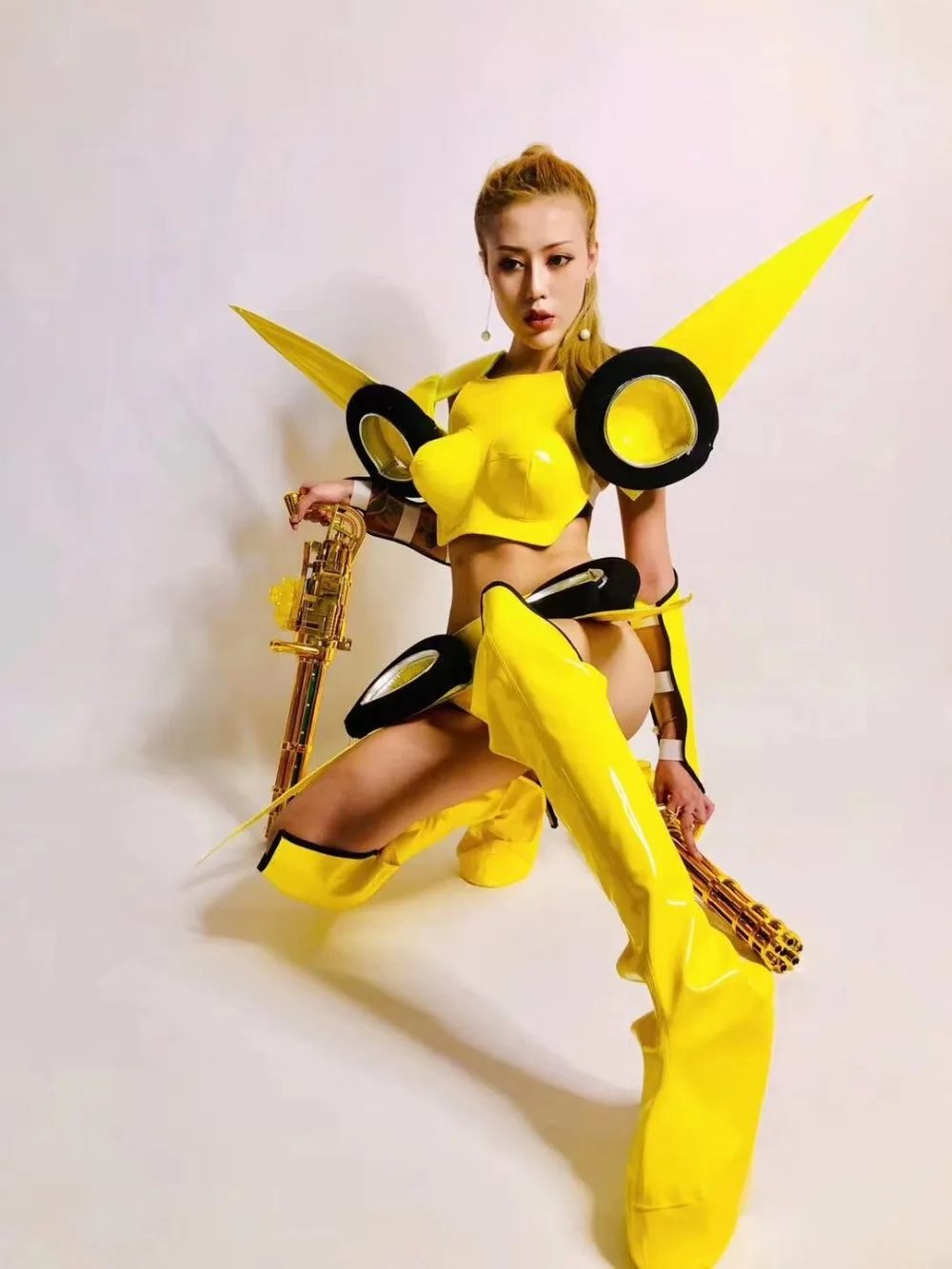 Future party robot girl friend wear cosplay transformer robot costume show stage dance outfit