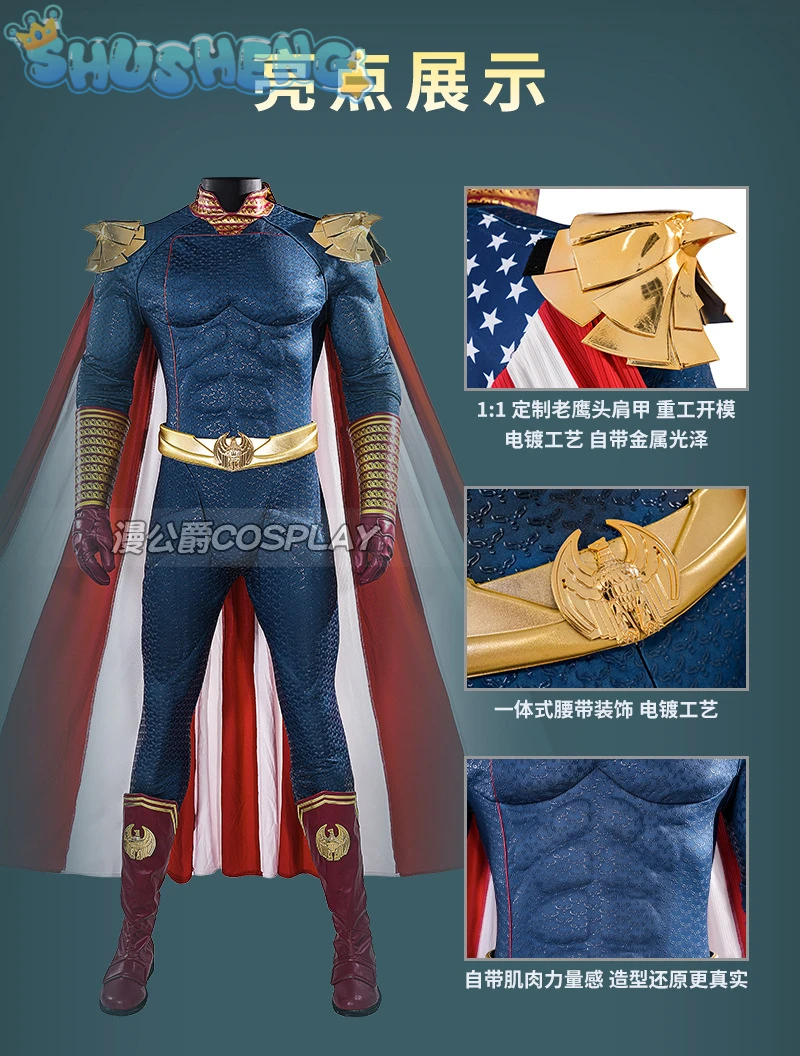New Homelander Cosplay The Boys Costume Shoes Jumpsuit cloak shoulder armor belt gloves handguard Halloween Man uniform XS-XXXL