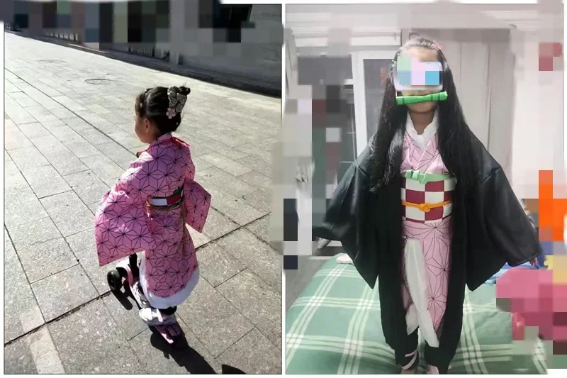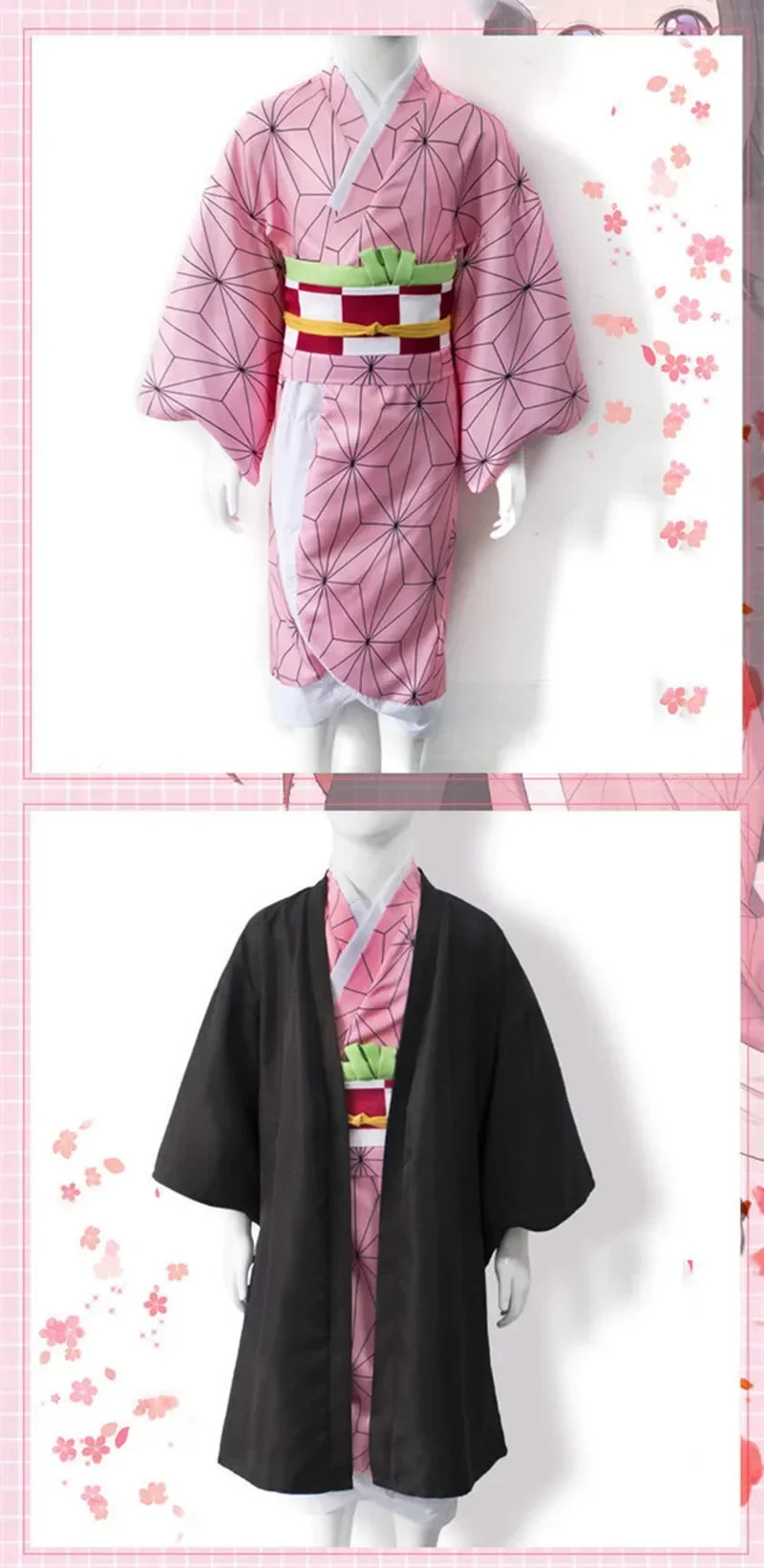 Nezuko Cosplay Anime Demon Slayer Kimetsu No Yaiba Cosplay Costume Wig & Accessories Kamado Kimono Uniform Halloween Clothes