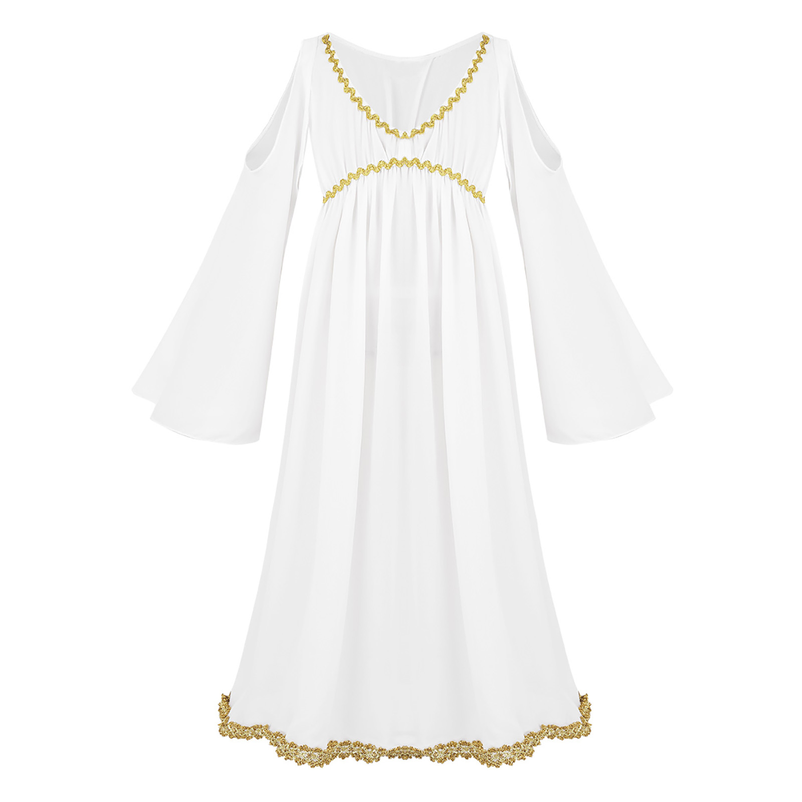 White Angel Costume for Girls Princess Fairy Cosplay Maxi Dress with Wings Set Halloween Party Angel Role Play Fancy Dress Up